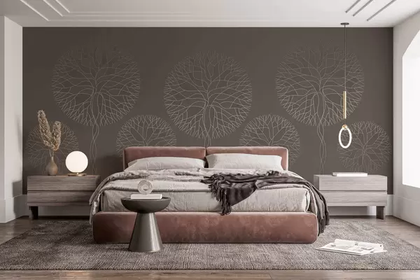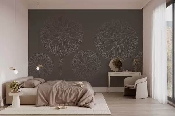 Carta da parati Alberi lineari fantastici con chiome rigogliose in eleganti tonalità moka nr. w05213v1