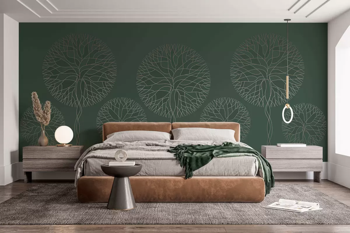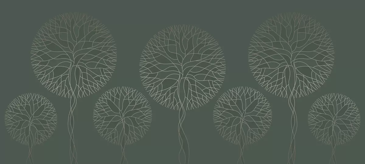 Carta da parati Alberi lineari fantastici con chiome rigogliose in eleganti tonalità verde scuro nr. w05213v2