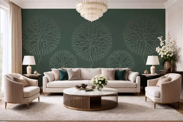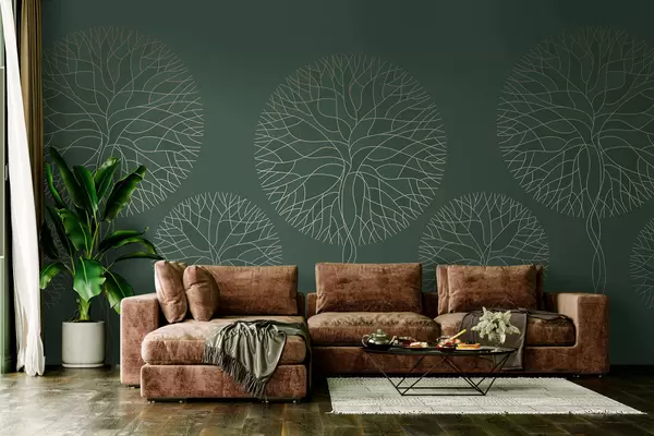 Carta da parati Alberi lineari fantastici con chiome rigogliose in eleganti tonalità verde scuro nr. w05213v2