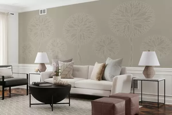 Carta da parati Alberi lineari fantastici con chiome rigogliose nei toni del beige nr. w05213v3