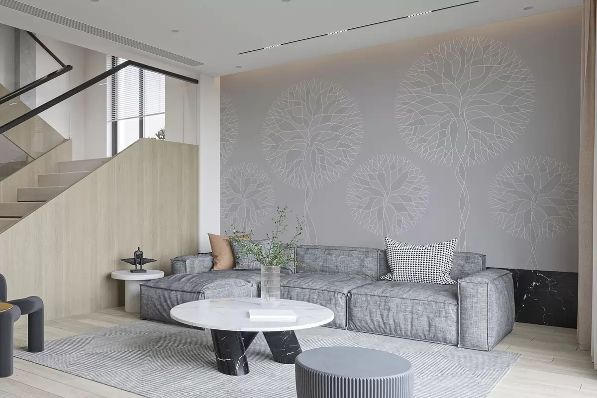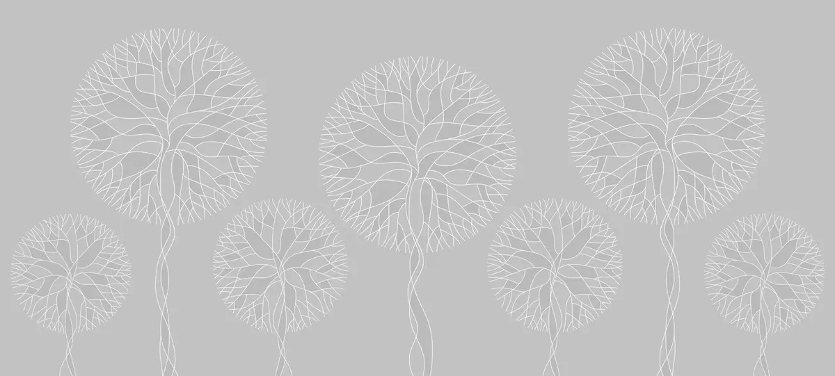 Carta da parati Alberi lineari fantastici con chiome rigogliose nei toni del grigio chiaro nr. w05213v4