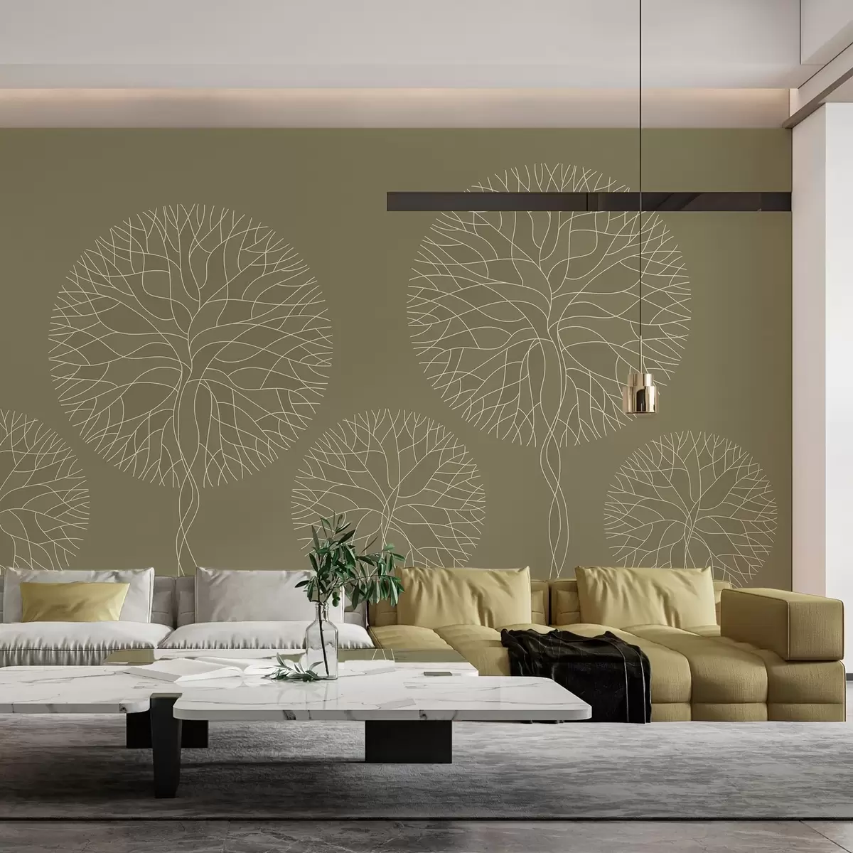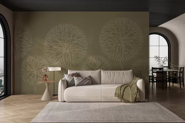 Carta da parati Alberi lineari fantastici con chiome rigogliose nei toni del kaki nr. w05213v7