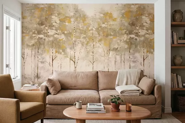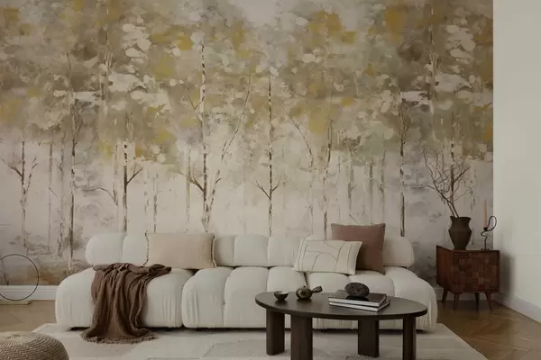 Carta da parati Foresta stilizzata con alberi slanciati dai toni caldi nr. w05221