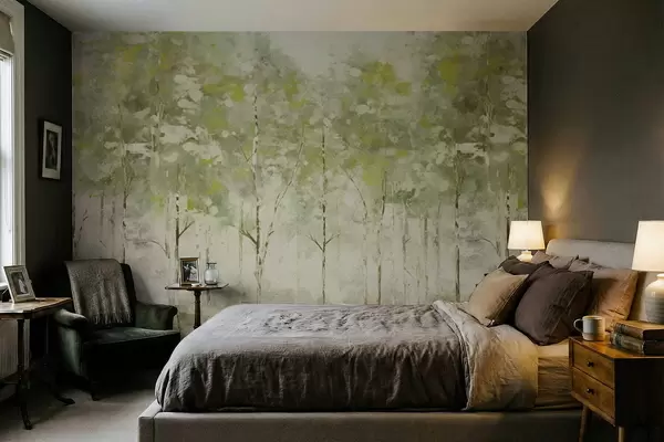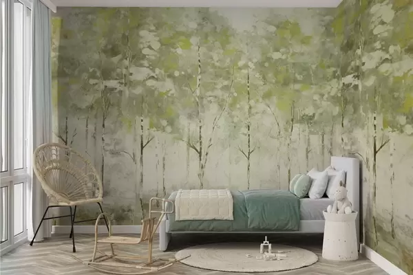 Carta da parati Foresta stilizzata con alberi slanciati nei toni del verde nr. w05221v1