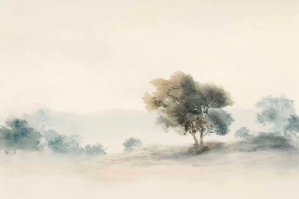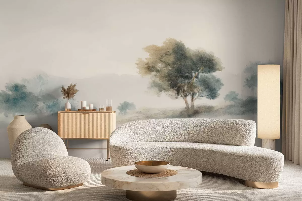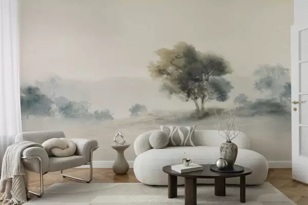 Carta da parati Paesaggio tranquillo con un albero e forme sfocate e morbide nr. w05223v1