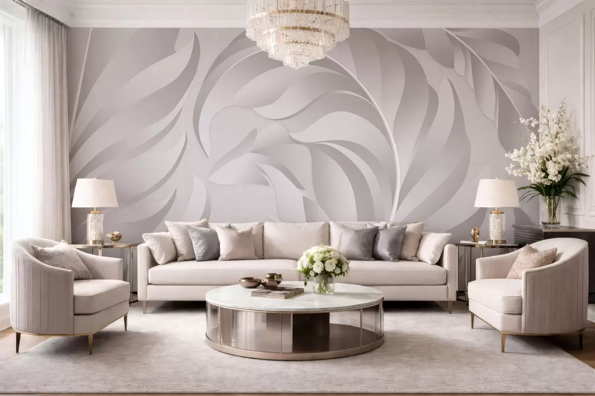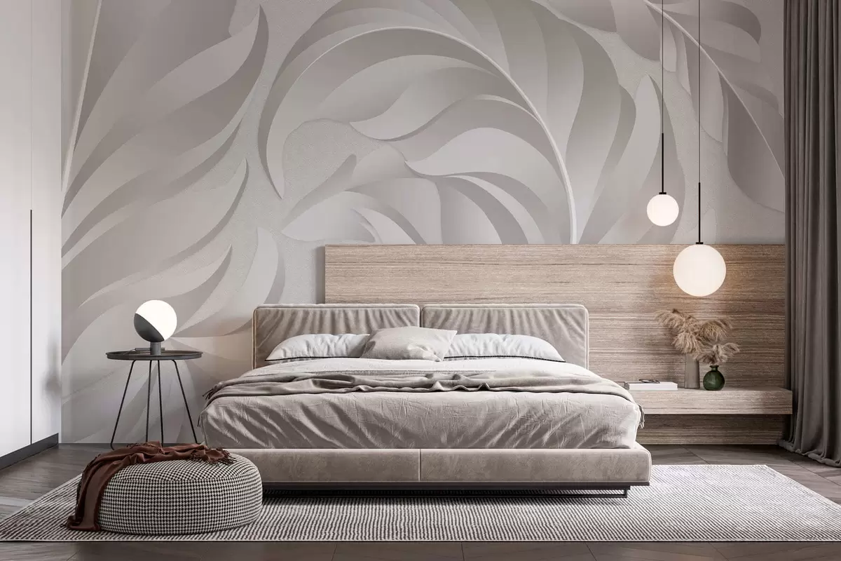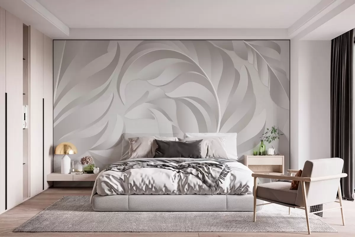 Carta da parati grandi piume testurizzate in tonalità perlacee nr. w05231v2