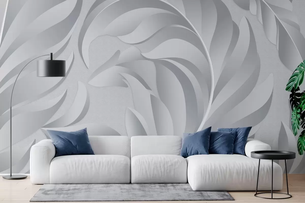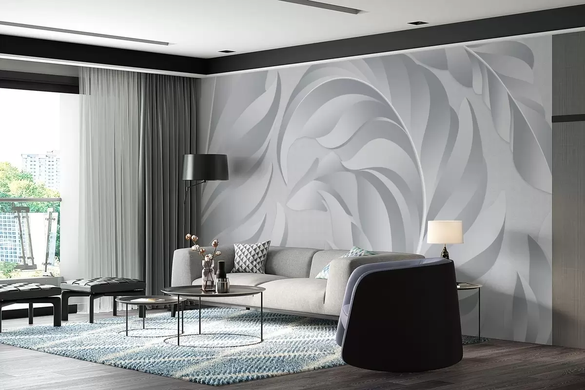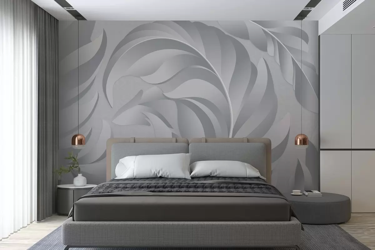 Carta da parati grandi piume testurizzate nei toni del grigio nr. w05231v3