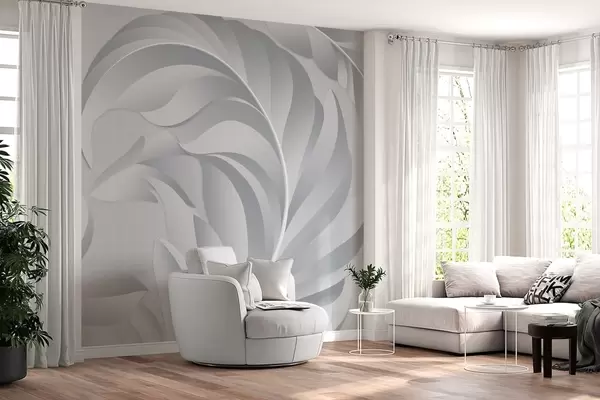 Carta da parati grandi piume testurizzate nei toni del grigio nr. w05231v3