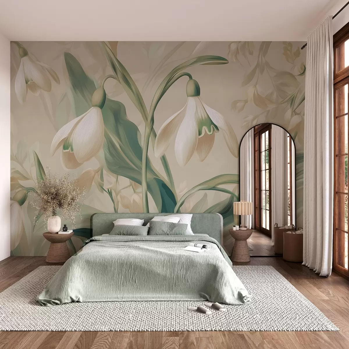 Carta da parati bucaneve in fiore su sfondo beige nr. w05234