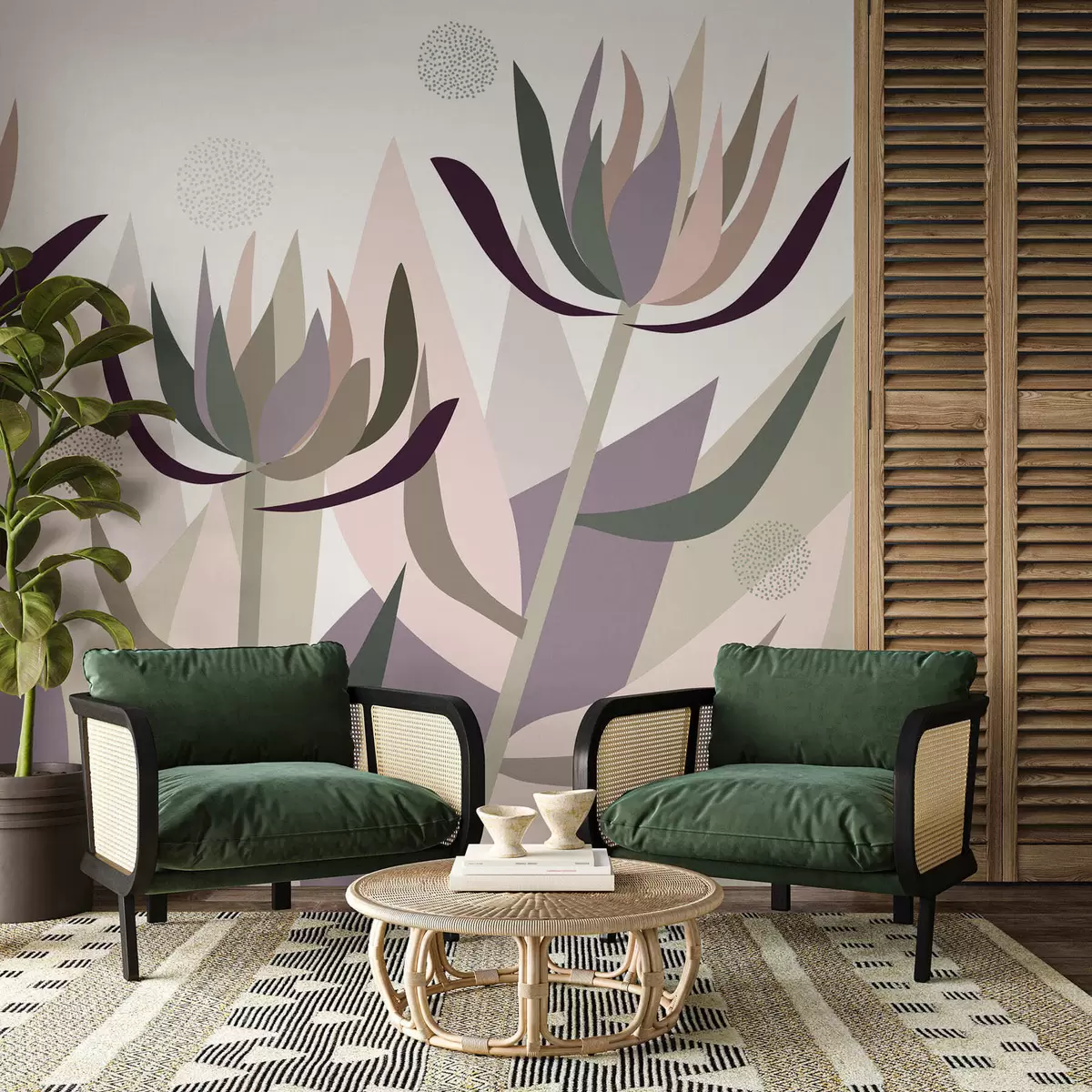 Carta da parati fiori di protea stilizzati in stile primitivo nr. w05236