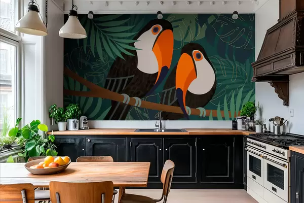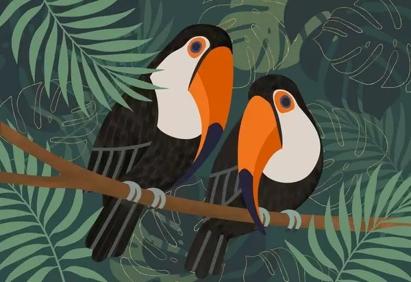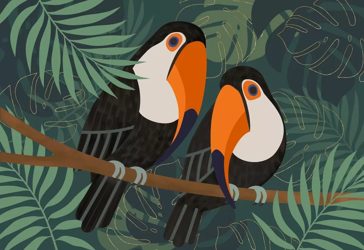 Carta da parati coppia di tucani su un ramo in stile afro nr. w05239