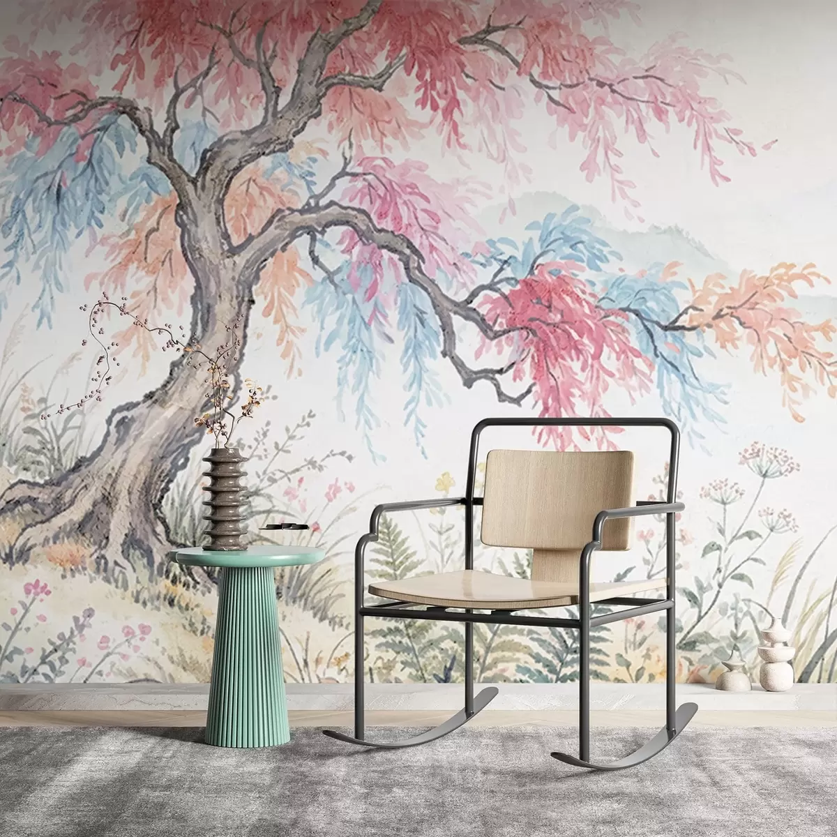 Carta da parati Giardino colorato dipinto su muro di cemento nr. w05246