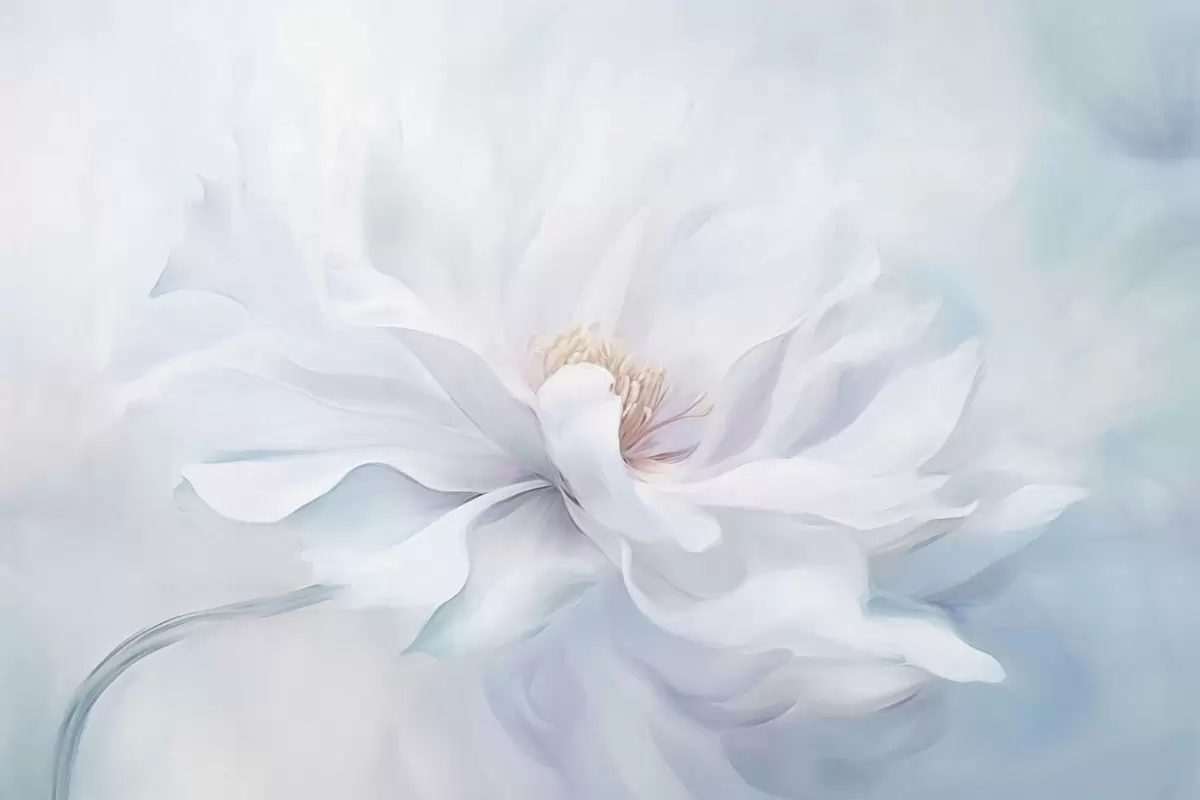 Carta da parati Fiore bianco morbido con petali fluenti su sfondo blu nr. w05354