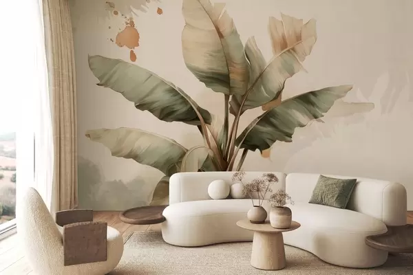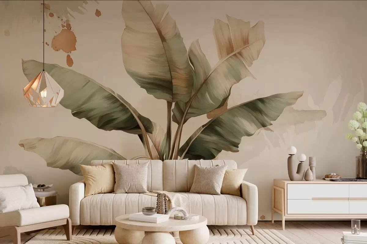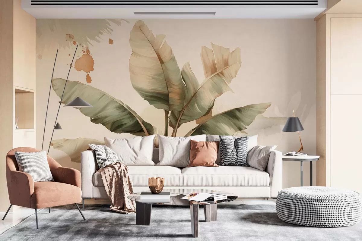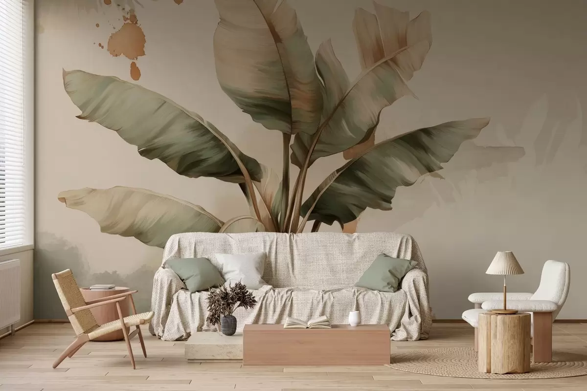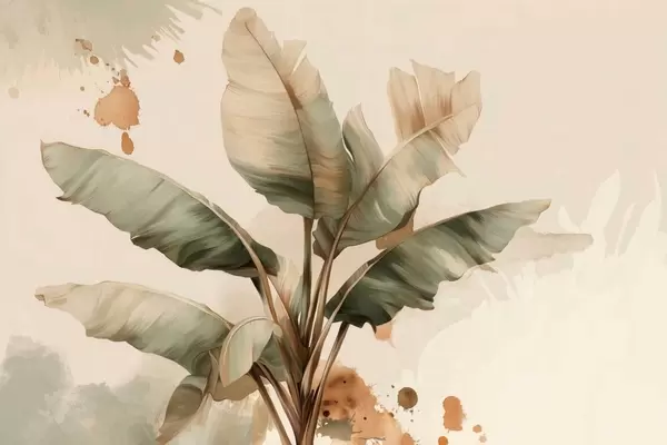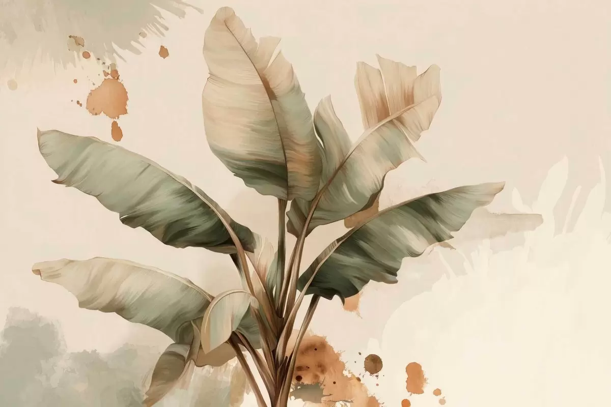 Carta da parati un grande e pittoresco grappolo di foglie di banano con tocchi in stile retrò nr. w05384