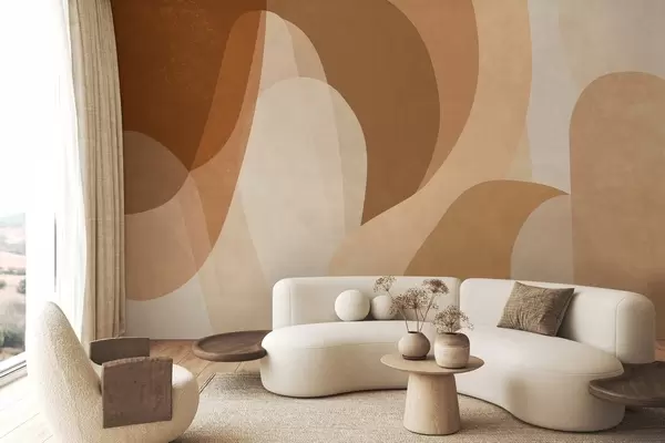 Carta da parati curve astratte nei toni del marrone, del beige e del ramato nr. w05387