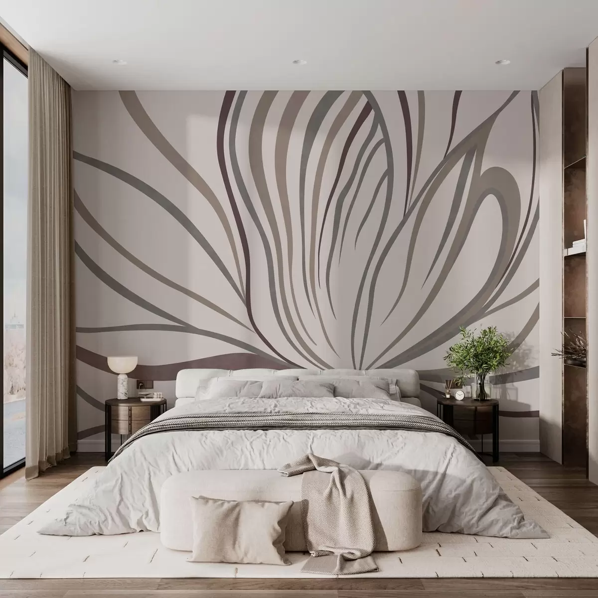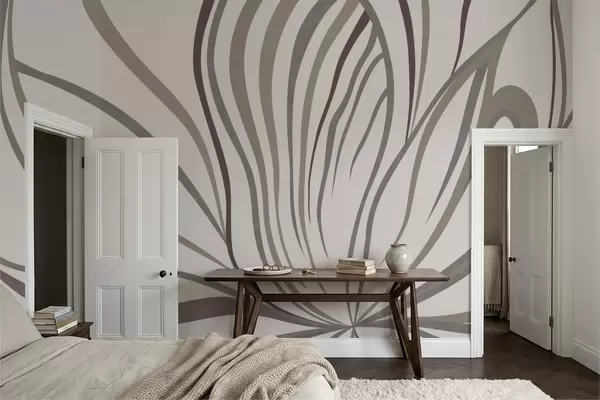 Carta da parati Fiore astratto con linee nei toni del grigio e del rosa nr. w05392