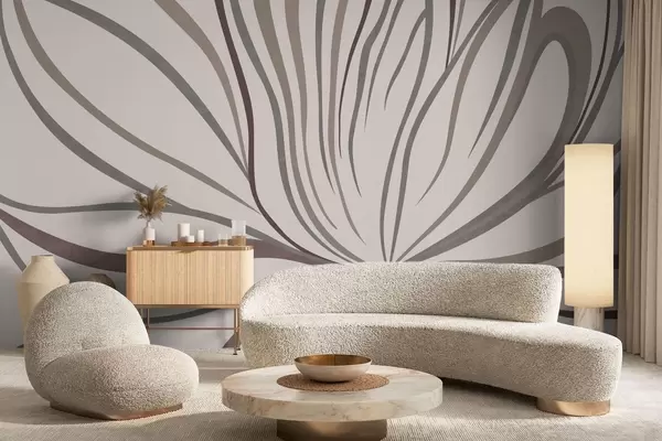 Carta da parati Fiore astratto con linee nei toni del grigio e del rosa nr. w05392