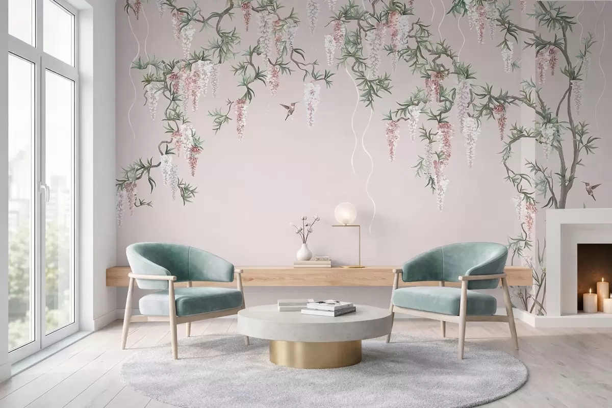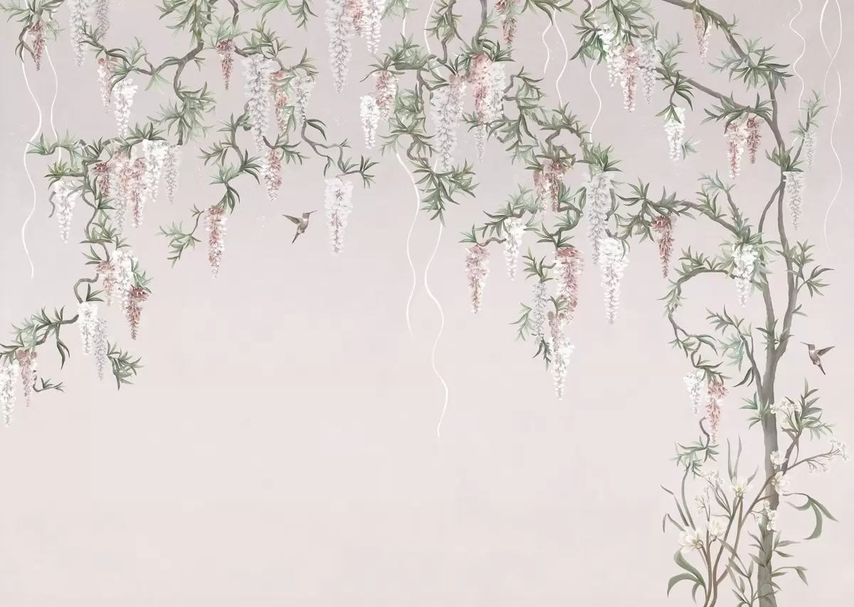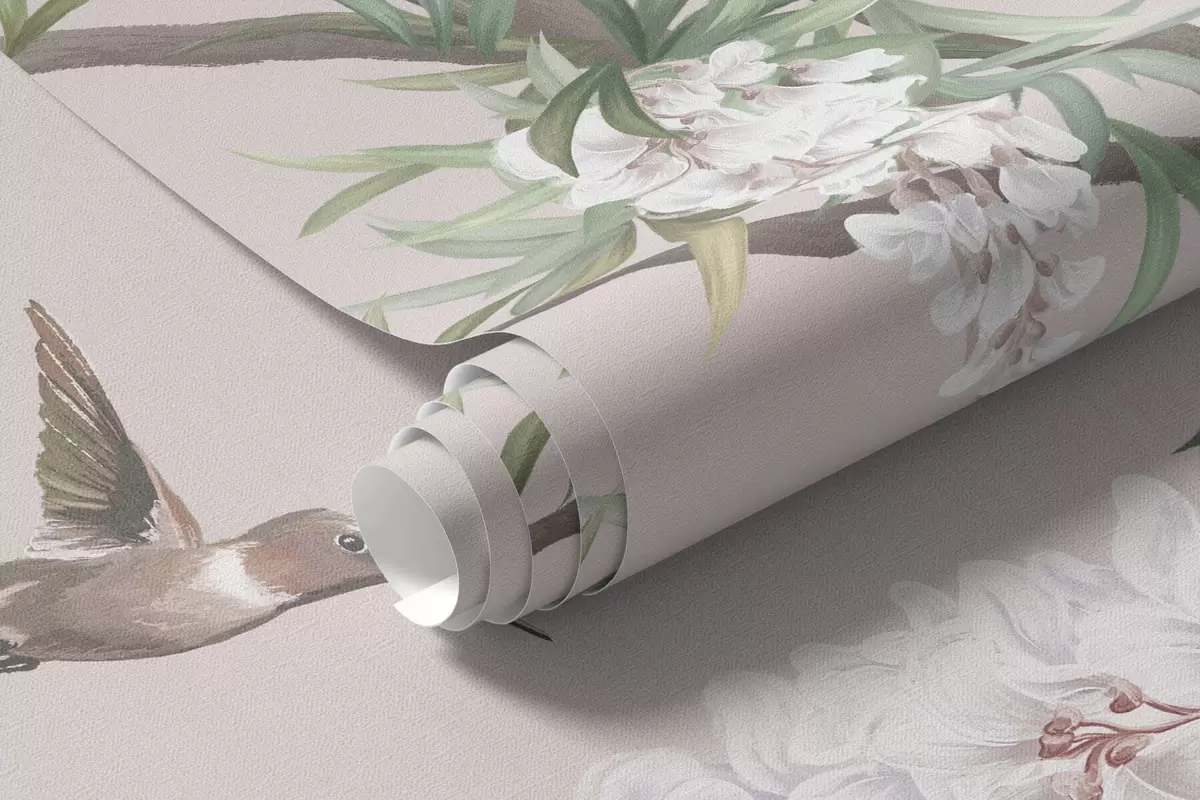 Carta da parati Rami in fiore con boccioli rosa e uccellini nr. w05394v1