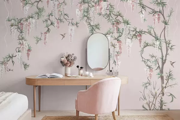 Carta da parati Rami in fiore con boccioli rosa e uccellini nr. w05394v1