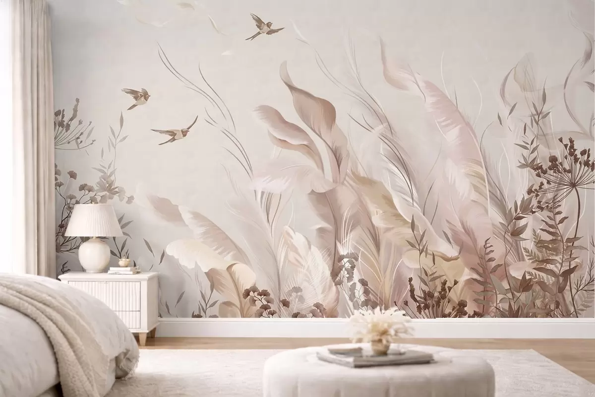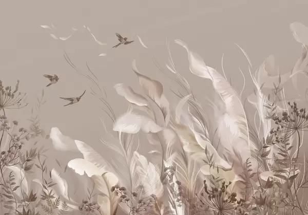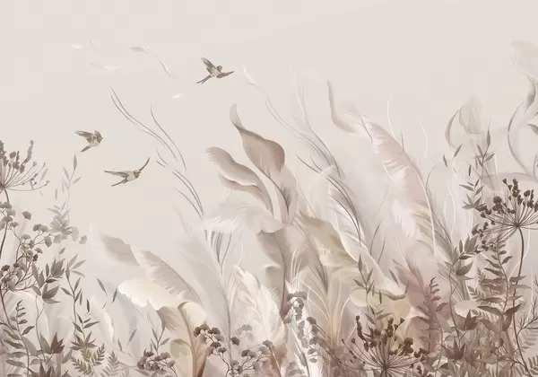 Carta da parati Morbide piume, erbe e uccelli dai toni chiari nr. w05395