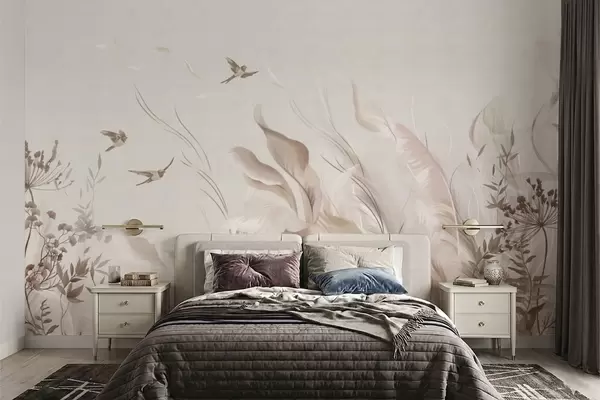 Carta da parati Morbide piume, erbe e uccelli dai toni chiari nr. w05395