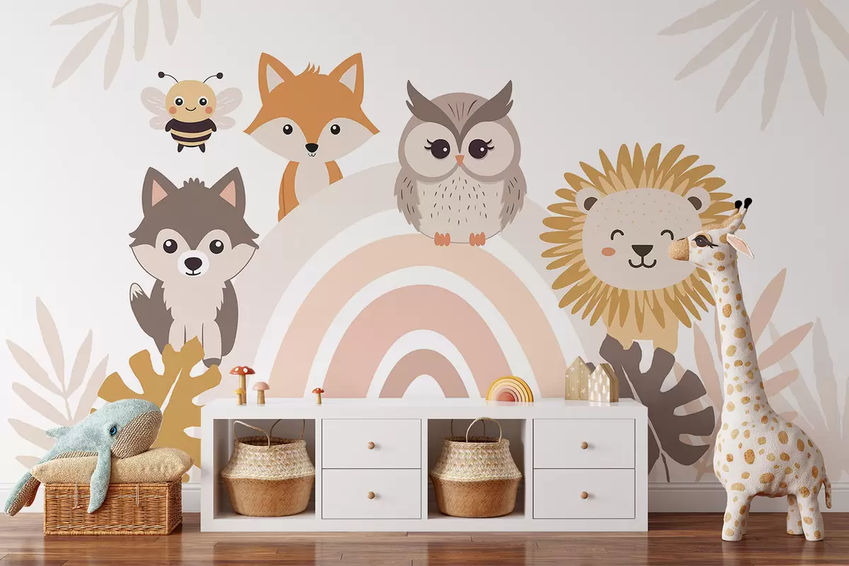 Carta da parati Animali carini vicino all'arcobaleno nr. w05399