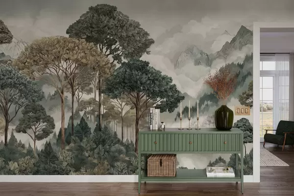 Carta da parati Paesaggio montano con bosco dai toni tenui nr. w05410v1