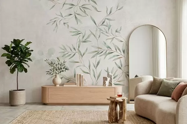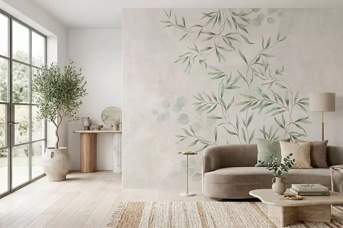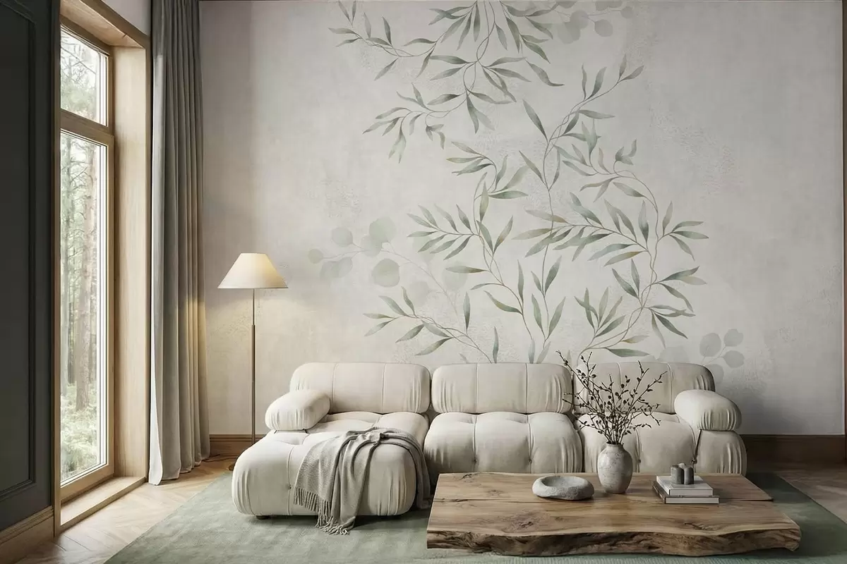 Carta da parati Delicato motivo botanico con rami sottili su sfondo chiaro nr. w05424