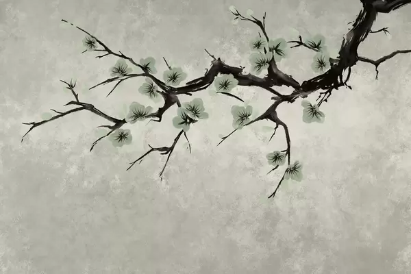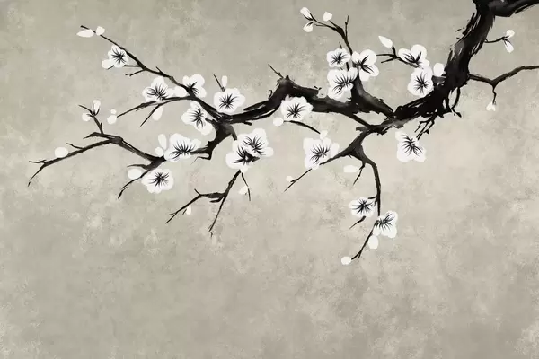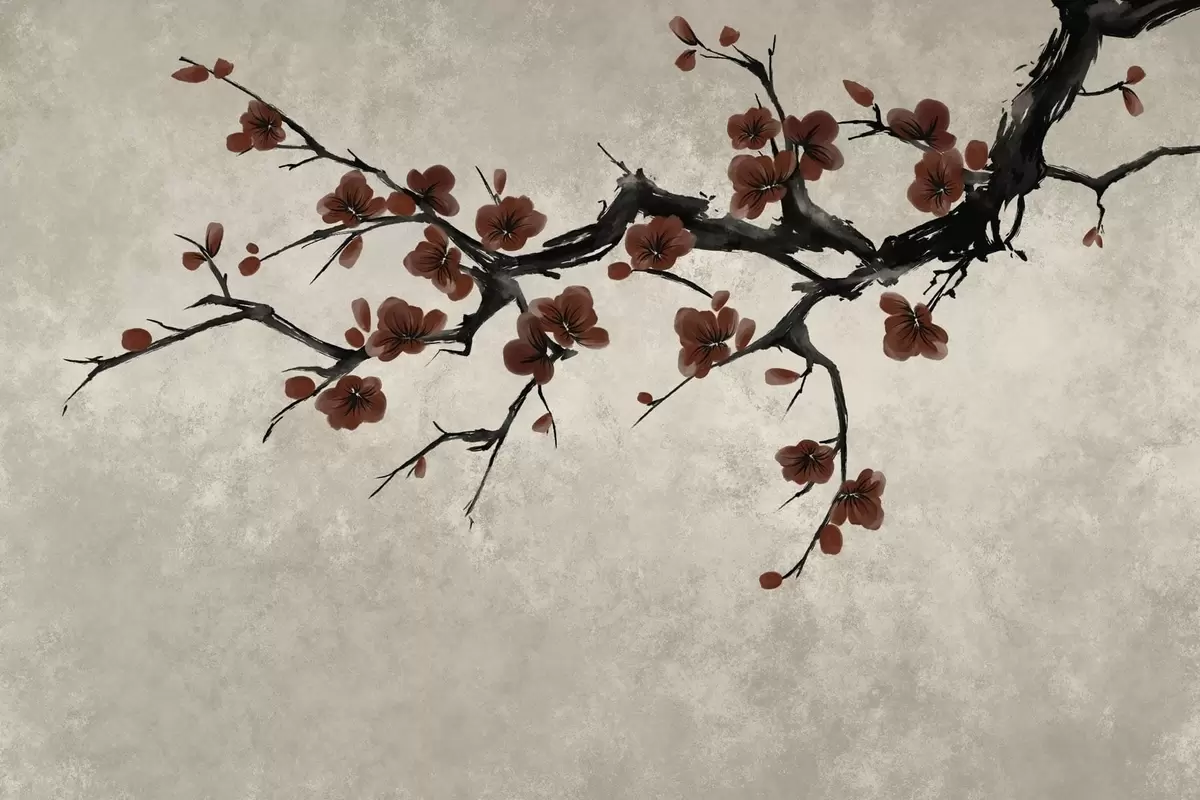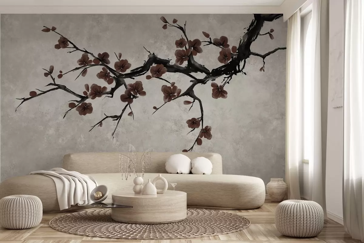 Carta da parati Ramo con fiori rosso scuro su sfondo neutro nr. w05425v1