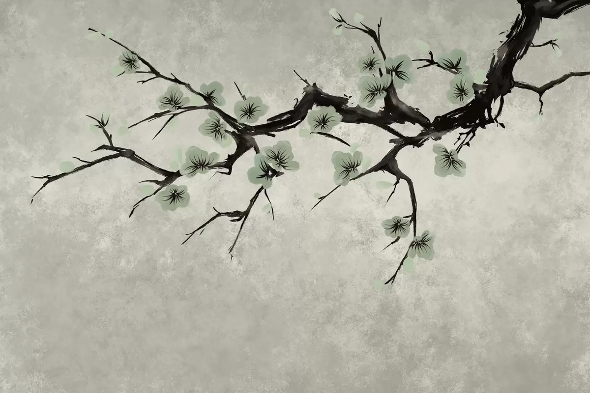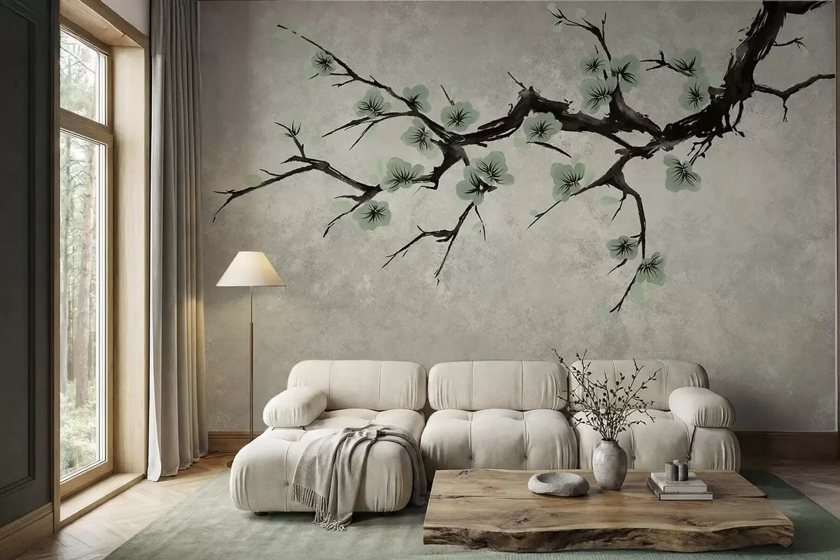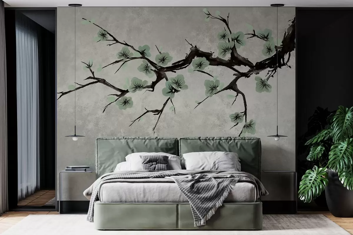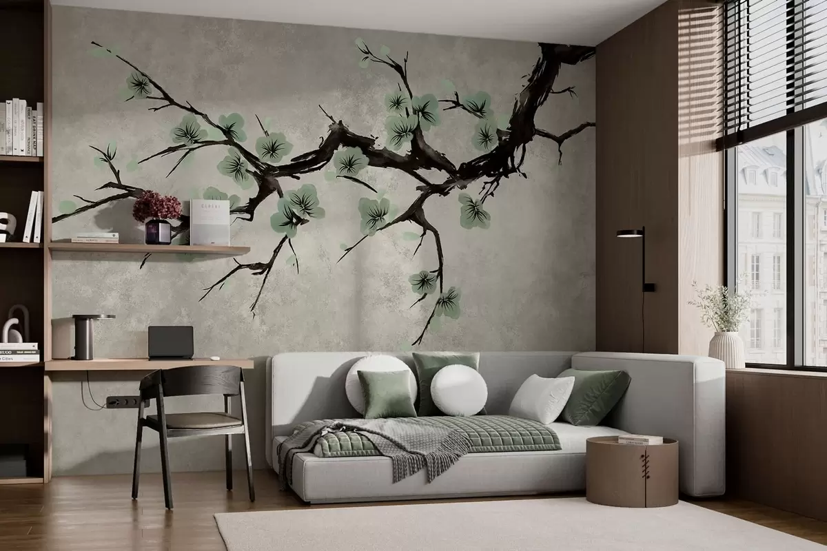 Carta da parati Ramo con boccioli verdi dai toni tenui nr. w05425v2