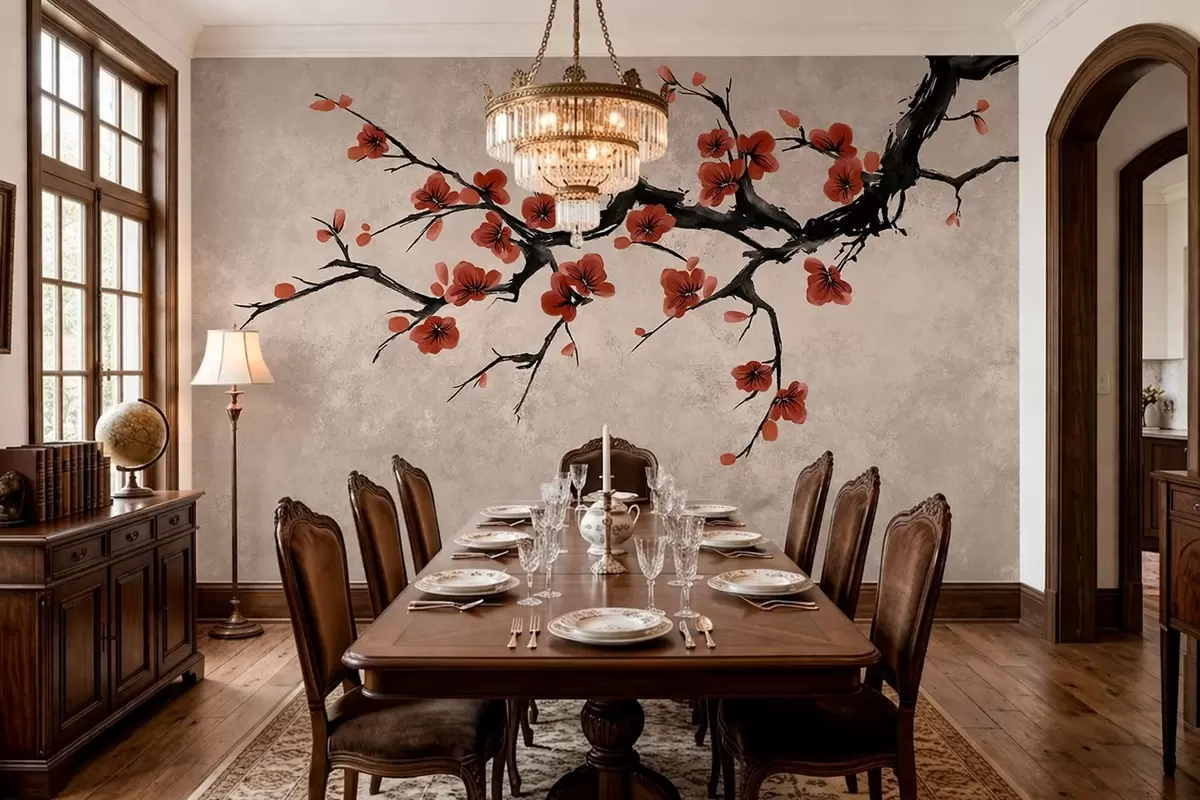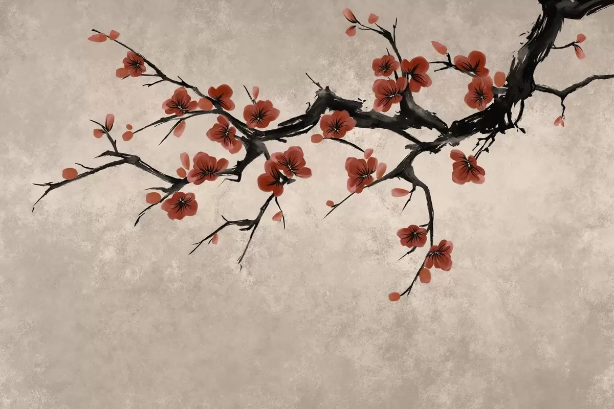 Carta da parati Ramo fiorito in stile orientale su sfondo beige nr. w05425v4