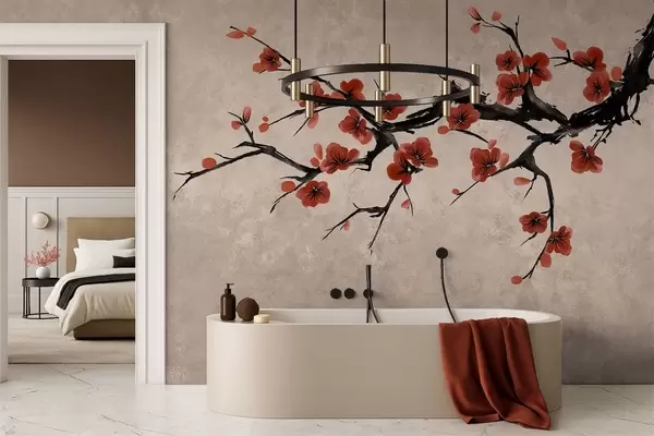 Carta da parati Ramo fiorito in stile orientale su sfondo beige nr. w05425v4