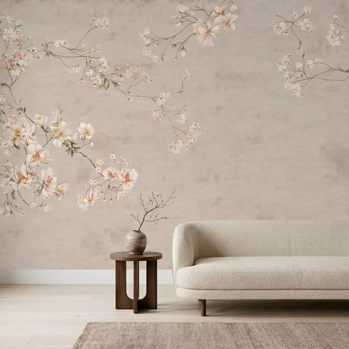 Carta da parati Rami floreali delicati in stile chinoiserie su sfondo chiaro nr. w05427