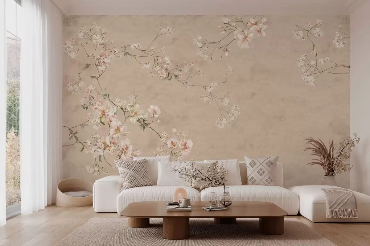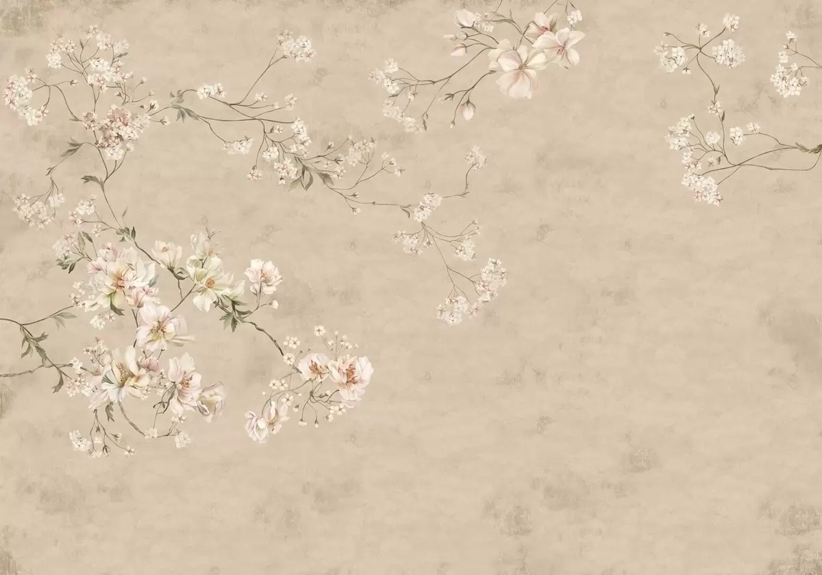 Carta da parati Rami floreali in stile chinoiserie su uno sfondo beige caldo nr. w05427v2