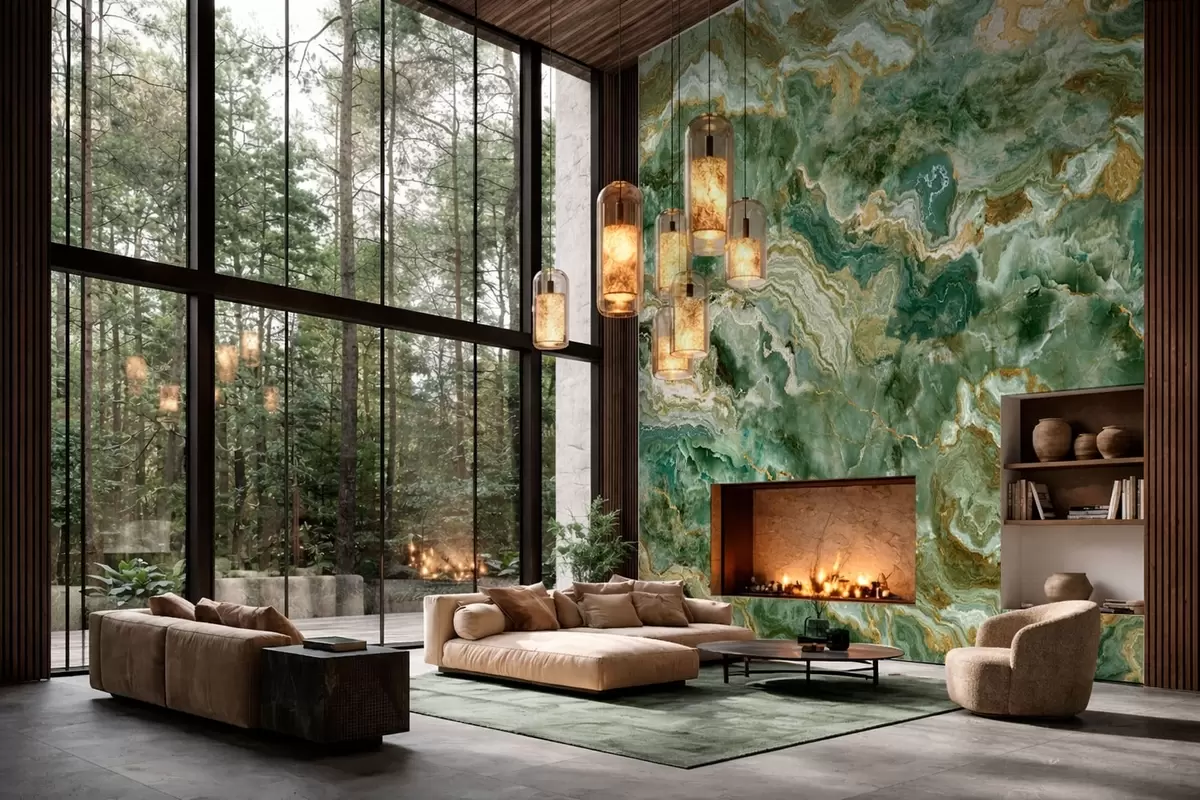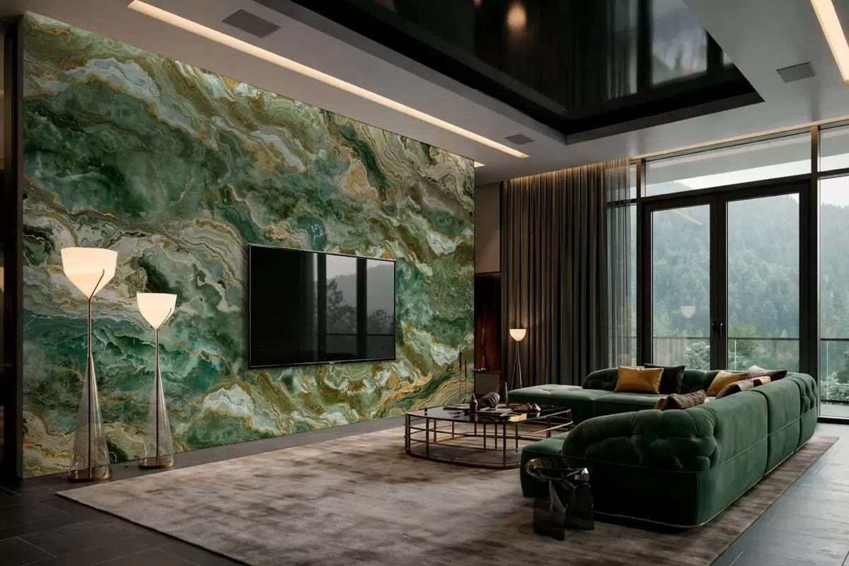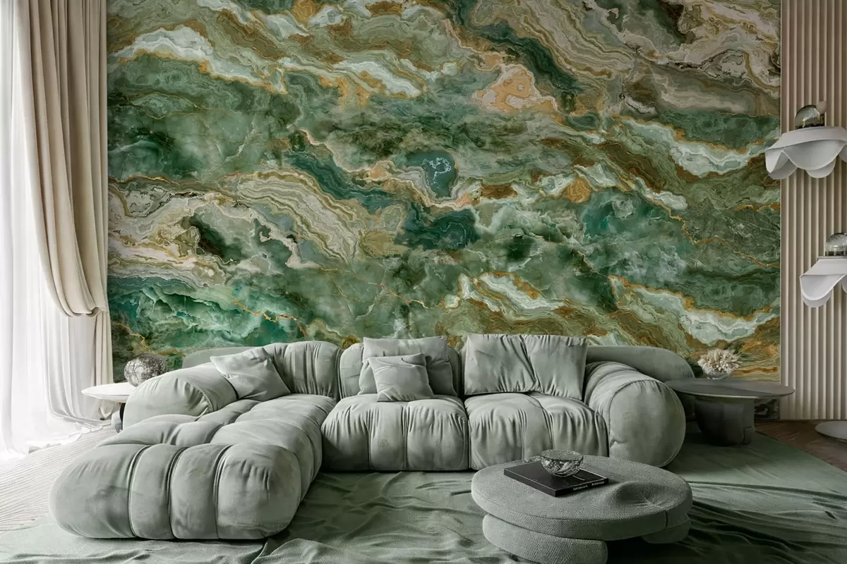 Carta da parati Struttura in onice verde con venature sinuose a strati nr. w05429