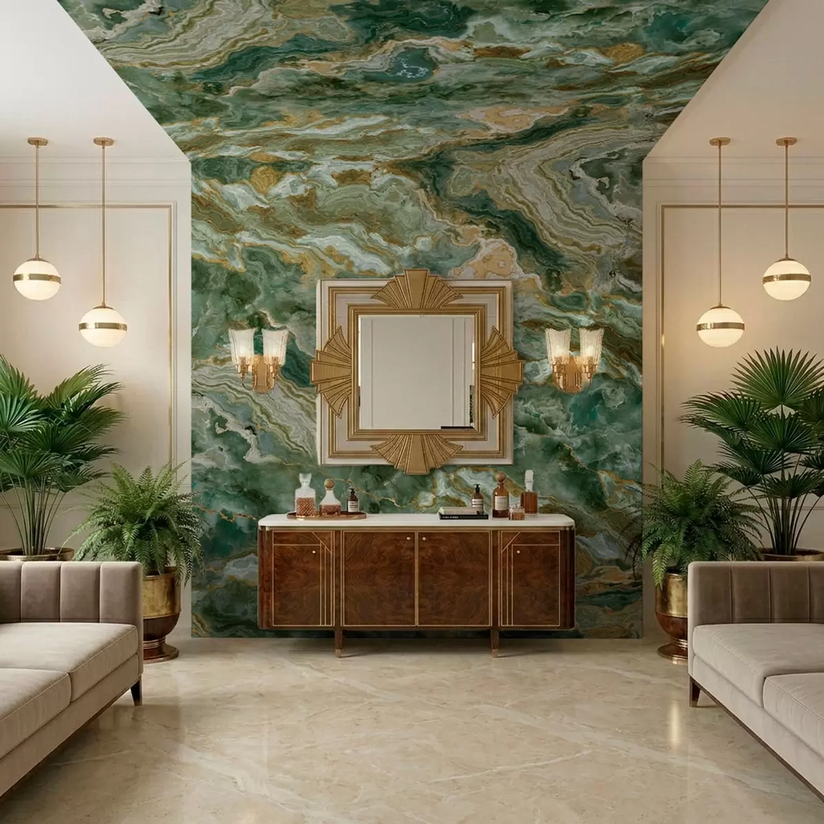 Carta da parati Struttura in onice verde con venature sinuose a strati nr. w05429