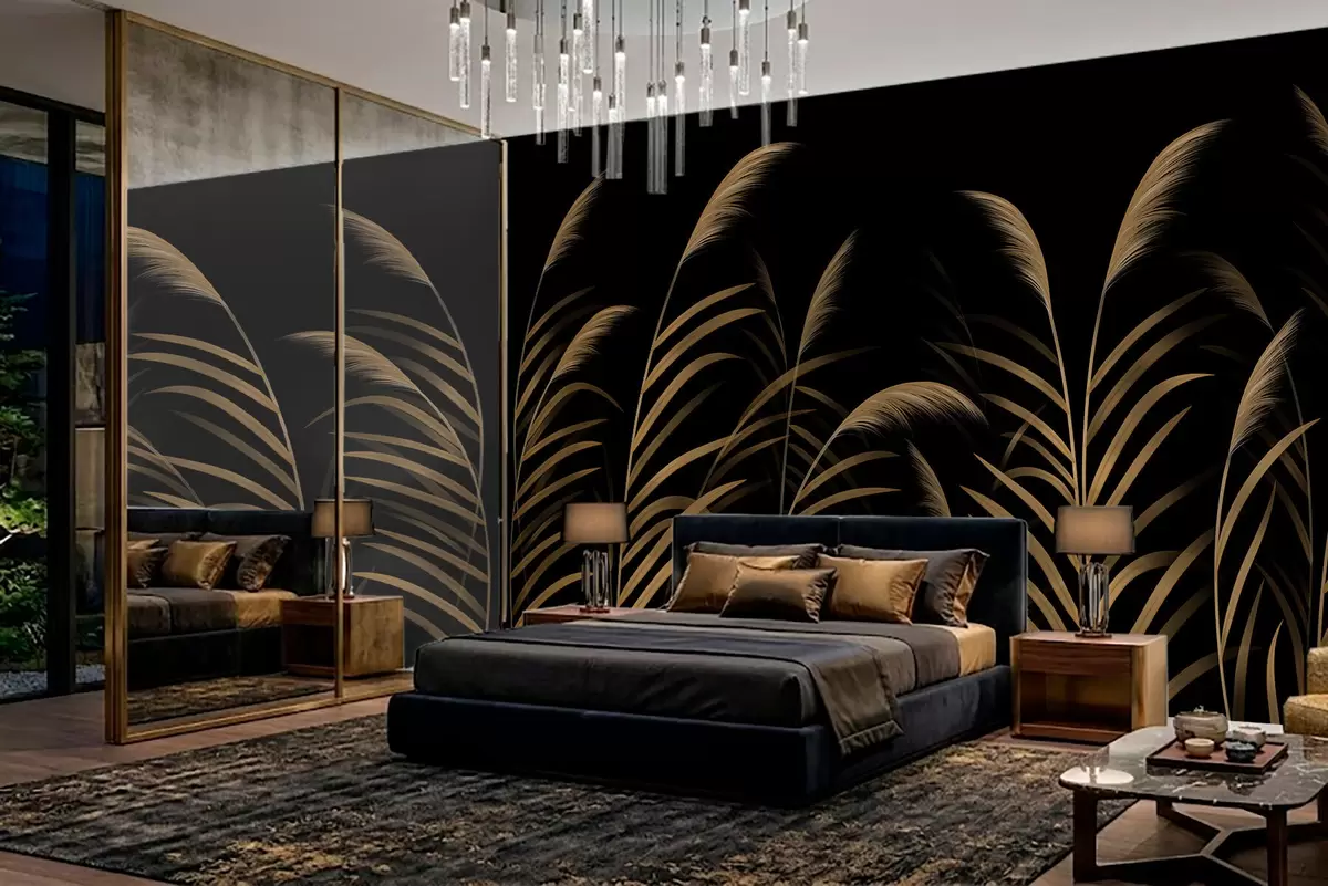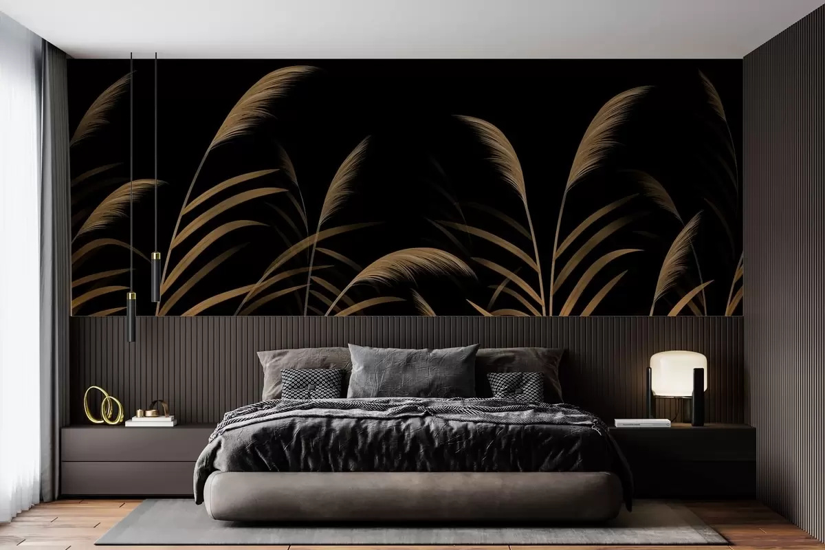 Carta da parati Erbe minimaliste su sfondo scuro ad alto contrasto nr. w05432v3