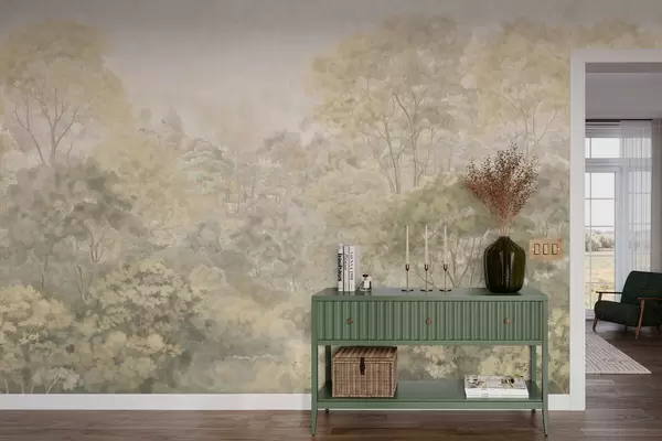 Carta da parati Paesaggio boschivo d'altri tempi dai tenui toni di verde nr. w05433