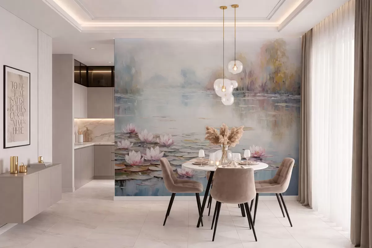 Carta da parati Lago impressionista con ninfee e luce soffusa nr. w05515