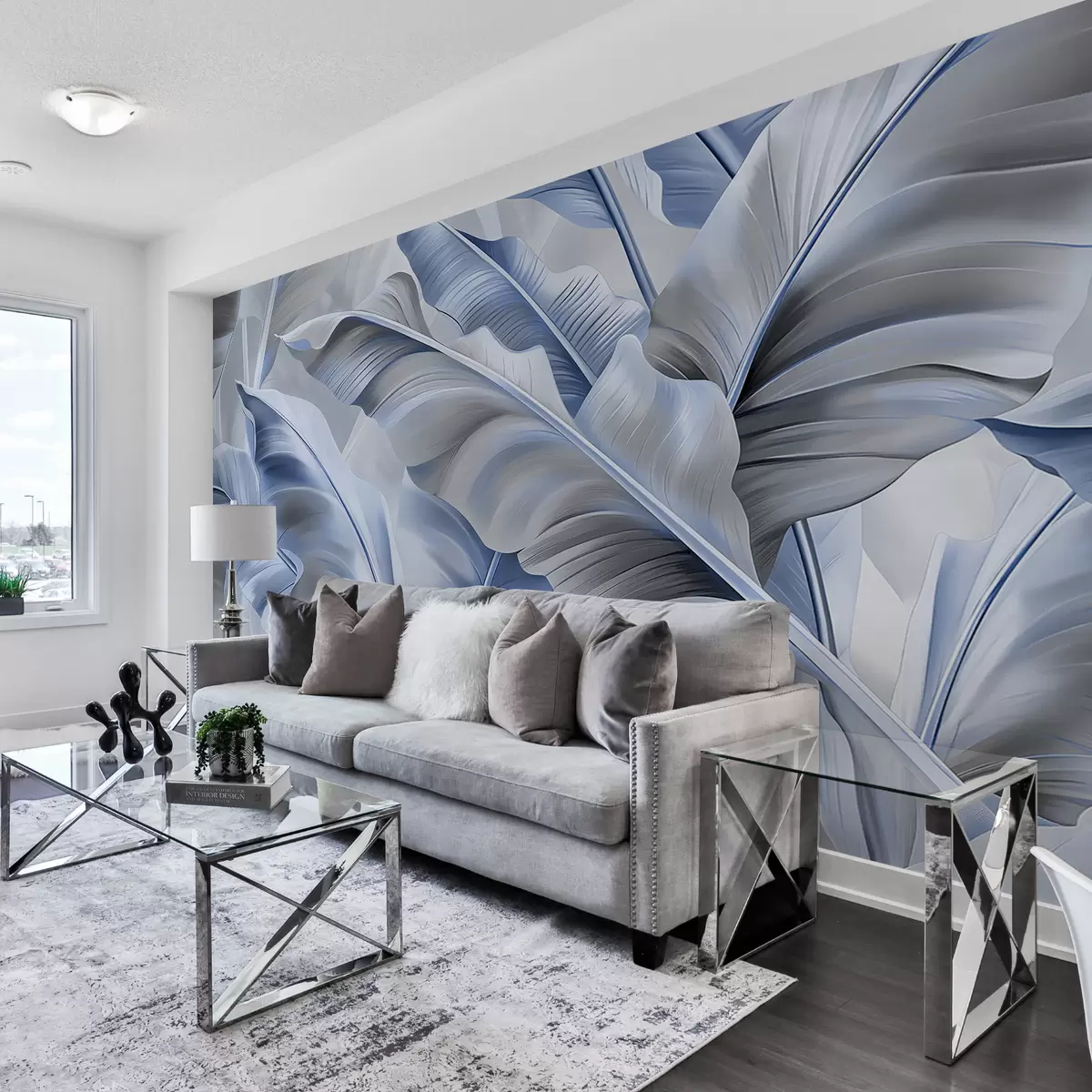 Carta da parati lussuose grandi foglie di banana nei colori grigio-blu nr. w07876v1