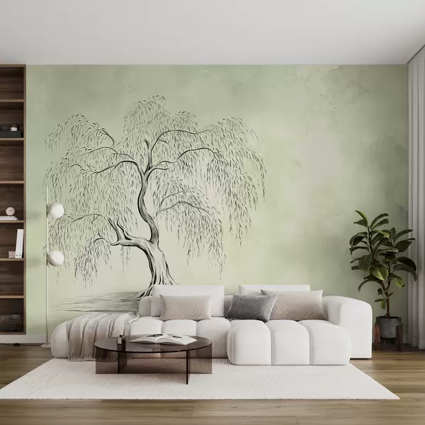 Carta da parati Albero di salice su sfondo acquerello grigio verde nr. w07969v1