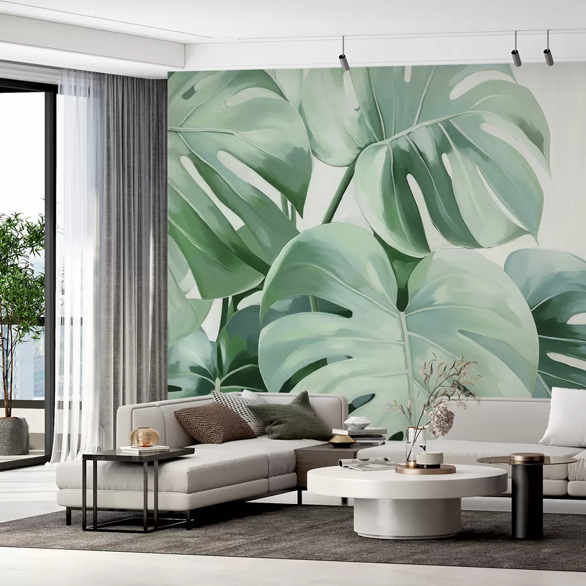 Carta da parati Grandi foglie verdi di monstera tropicale nr. w08116