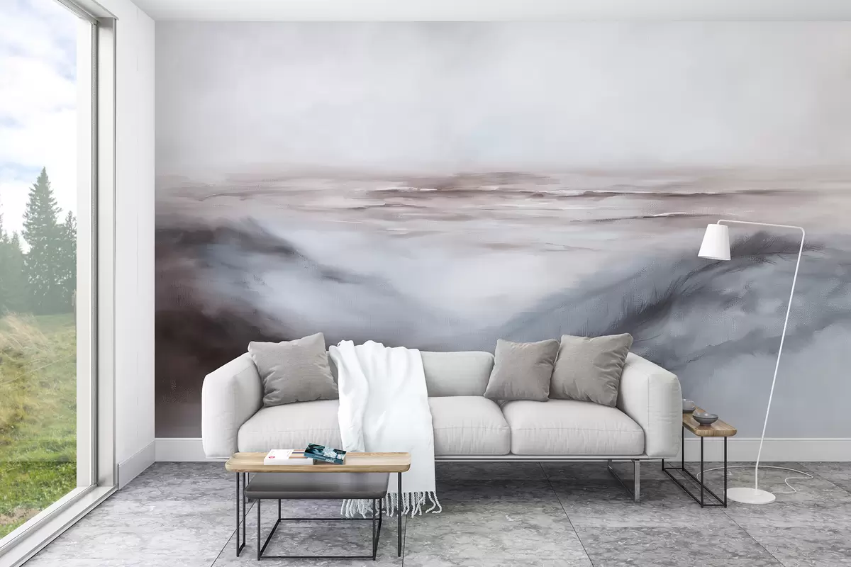 Carta da parati Paesaggio astratto in colori pastello, pennellate, spiaggia, mare, tavolozza di colori grigi nr. w08141