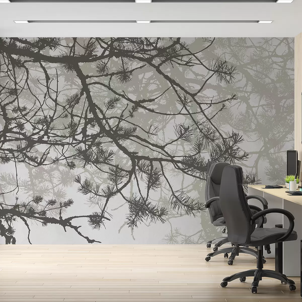 Carta da parati rami di un grande albero in toni di grigio nr. w08166