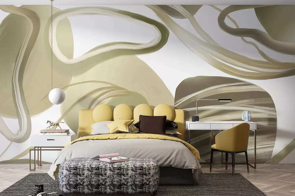 Carta da parati Forme astratte e curve vorticose nei toni del beige che creano una composizione dinamica e fluida nr. w08279
