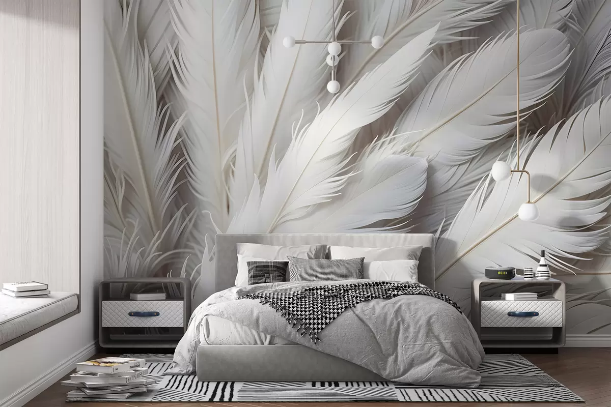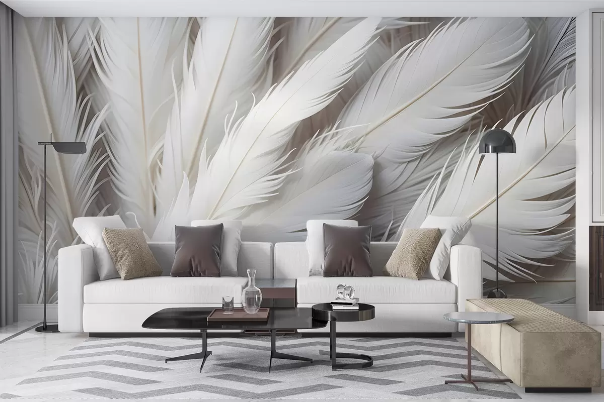 Carta da parati Morbide e soffici piume bianche con una texture delicata e vaporosa su uno sfondo chiaro nr. w08319