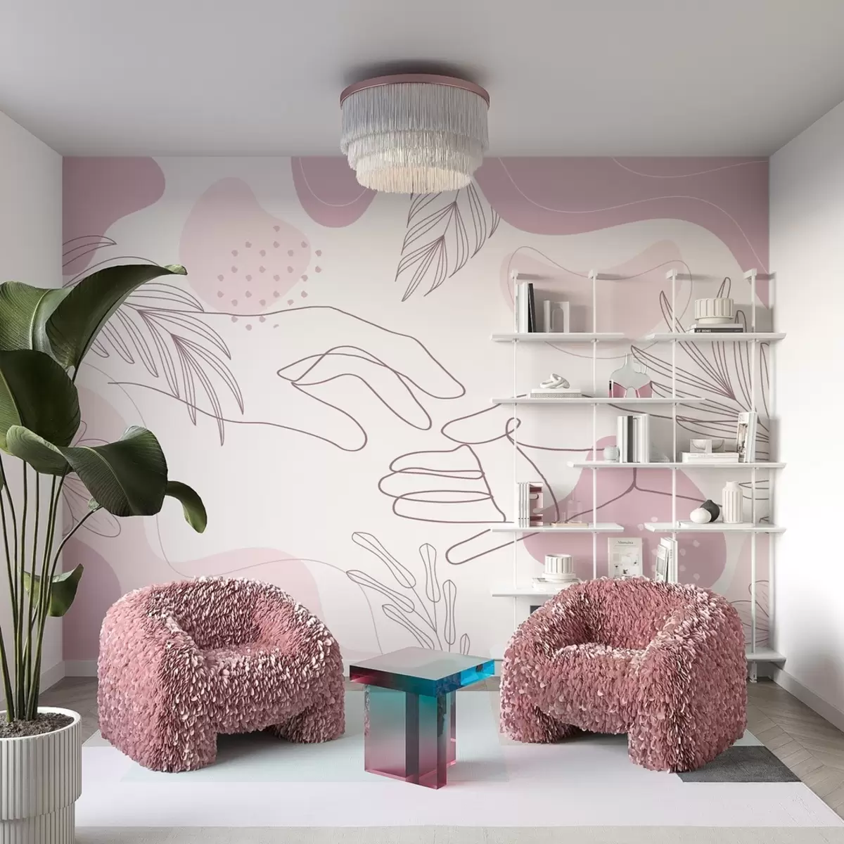Carta da parati Vettore, mani lineari, macchie, colore rosa nr. w08353v1