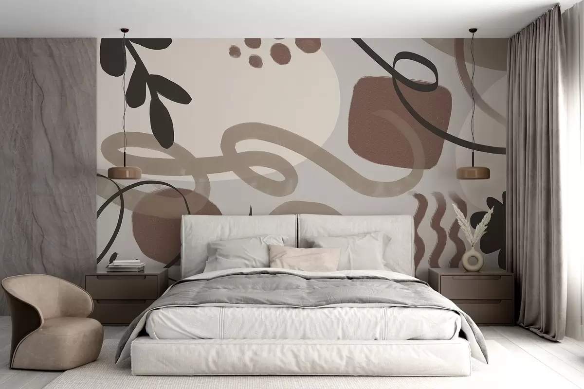 Carta da parati Stampa astratta moderna e minimalista con forme nei toni della terra, marrone, beige e nero nr. w08384
