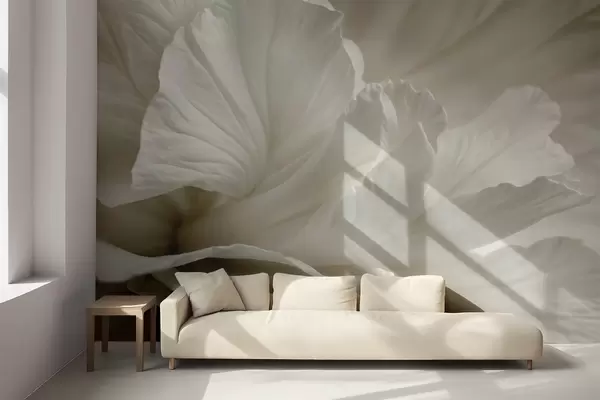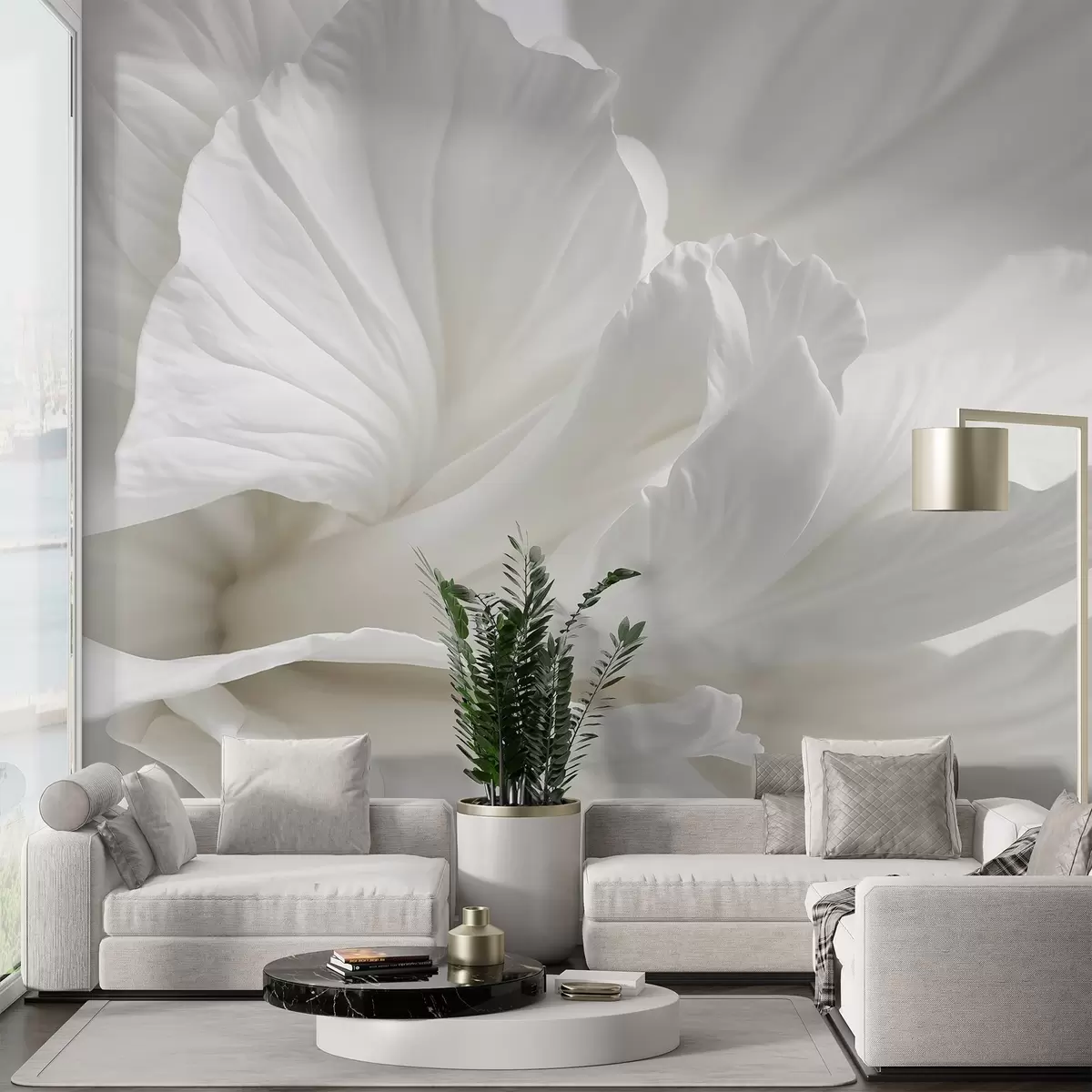 Carta da parati Stampa astratta minimalista di un delicato fiore bianco con petali morbidi e vellutati nr. w08424