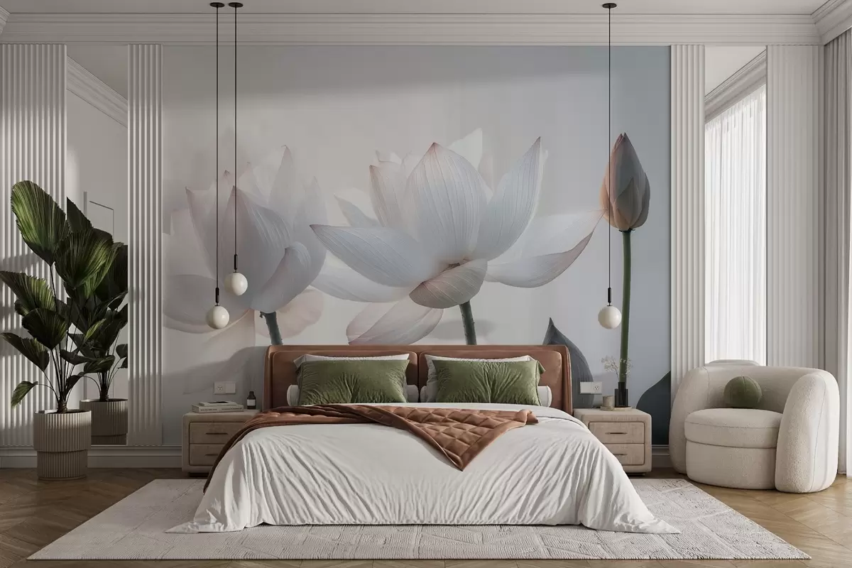 Carta da parati Delicati fiori di loto con petali e foglie nr. w08488